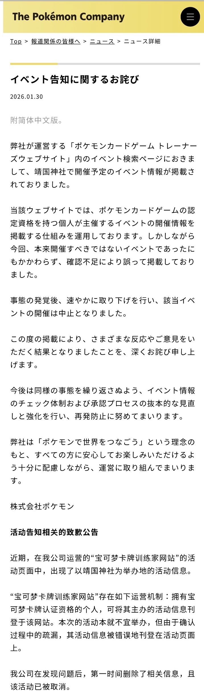 ポケモンカードのイベントを靖国神社で予定 中国共産党系メディア「歴史の真実に対する公然たる冒とく」削除された記事が23件あります.見る