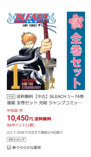 | … | 71無念Nameとしあき26/01/31(土)22:53:43No.1384036722+>>ブリーチ全巻3セットくらい買えそう |