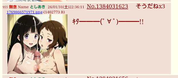 | … | 25無念Nameとしあき26/01/31(土)22:44:09No.1384033916+>>1000なら騎乗位強要シチュ祭り |