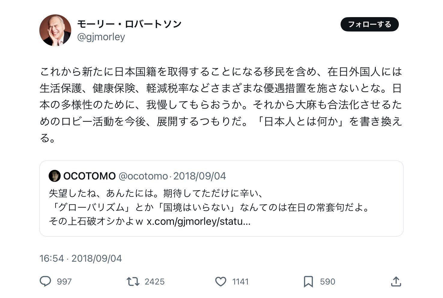 訃報モーリー・ロバートソンさんが逝去削除された記事が2件あります.見る