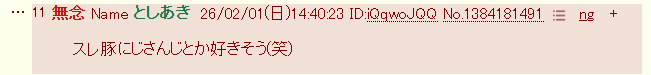 | … | 18無念Nameとしあき26/02/01(日)14:43:19No.1384182186そうだねx5>>ID:iQqwoJQQ |