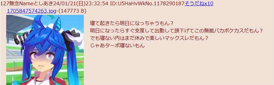 | … | 155無念Nameとしあき26/02/02(月)00:18:40 ID:MM8Ncia.No.1384339817そうだねx2>デアリングタクトちゃんとレッドディザイアちゃんを待ってるのが俺なんだよね |