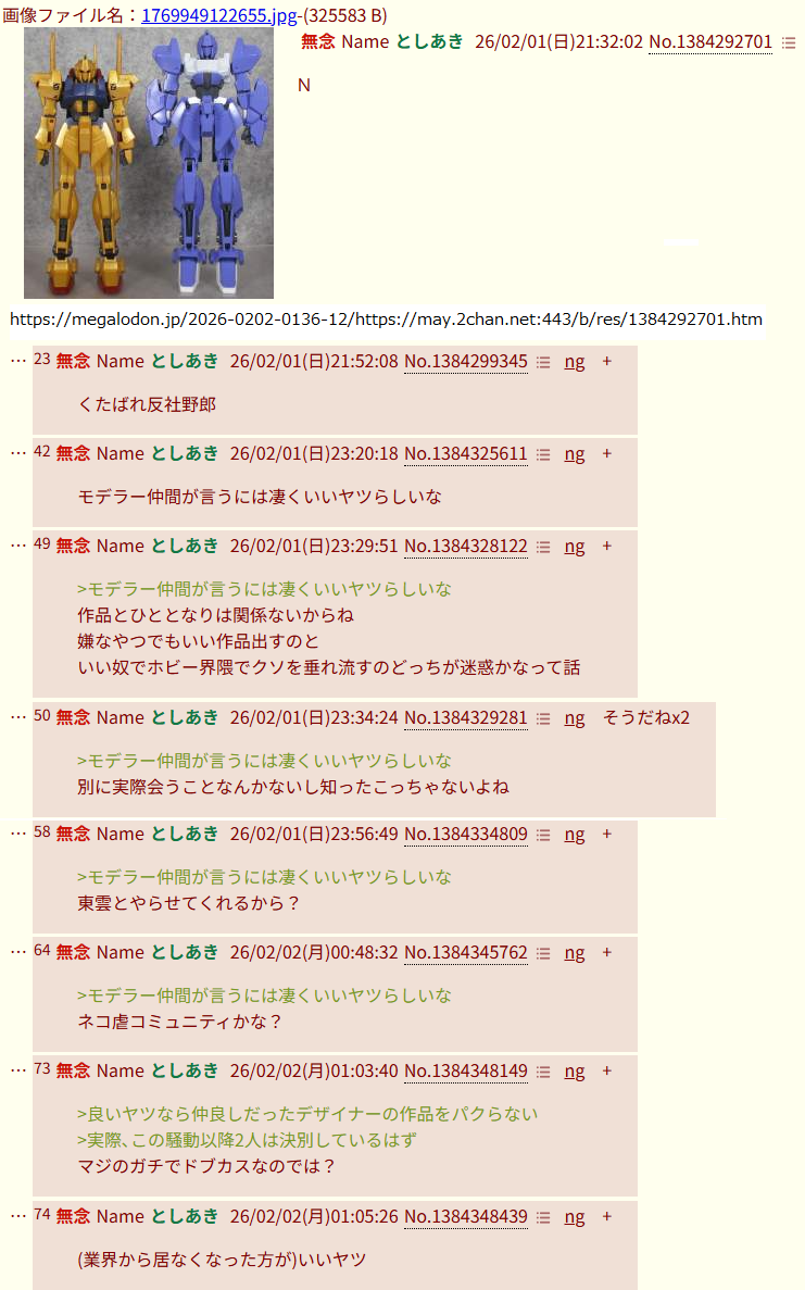 | … | 42無念Nameとしあき26/02/01(日)23:20:18No.1384325611+モデラー仲間が言うには凄くいいヤツらしいな |