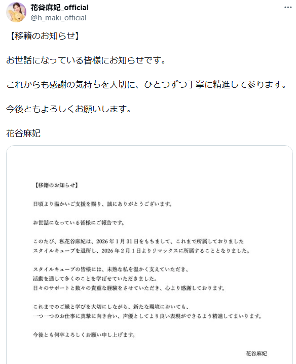 | … | 5無念Nameとしあき26/02/01(日)21:56:53No.1384300949そうだねx3 1769950613355.png-(94496 B) 花ちゃんも移籍してリマックスでかおるんの後輩に |