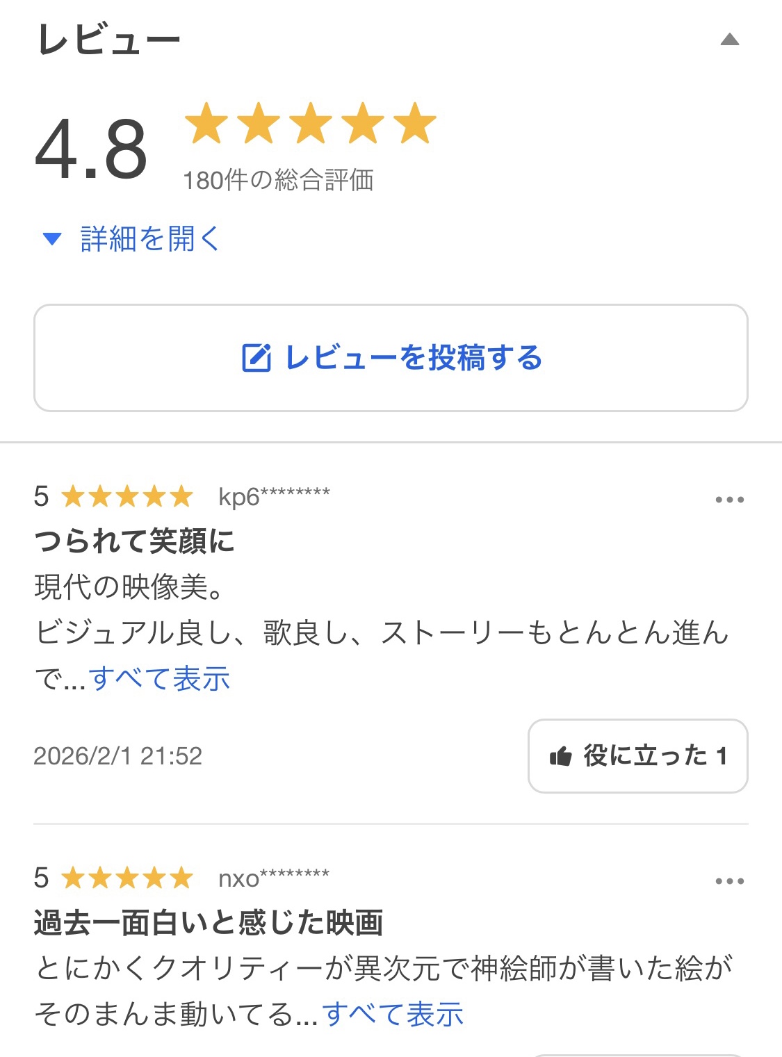 | … | 40無念Nameとしあき26/02/02(月)02:00:50No.1384354465+ 1769965250478.jpg-(206480 B) レビュー180人書いてて4.8てヤバい |