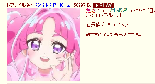 | … | 335無念Nameとしあき26/02/02(月)12:47:47No.1384405182+経産婦まんこプリキュア |