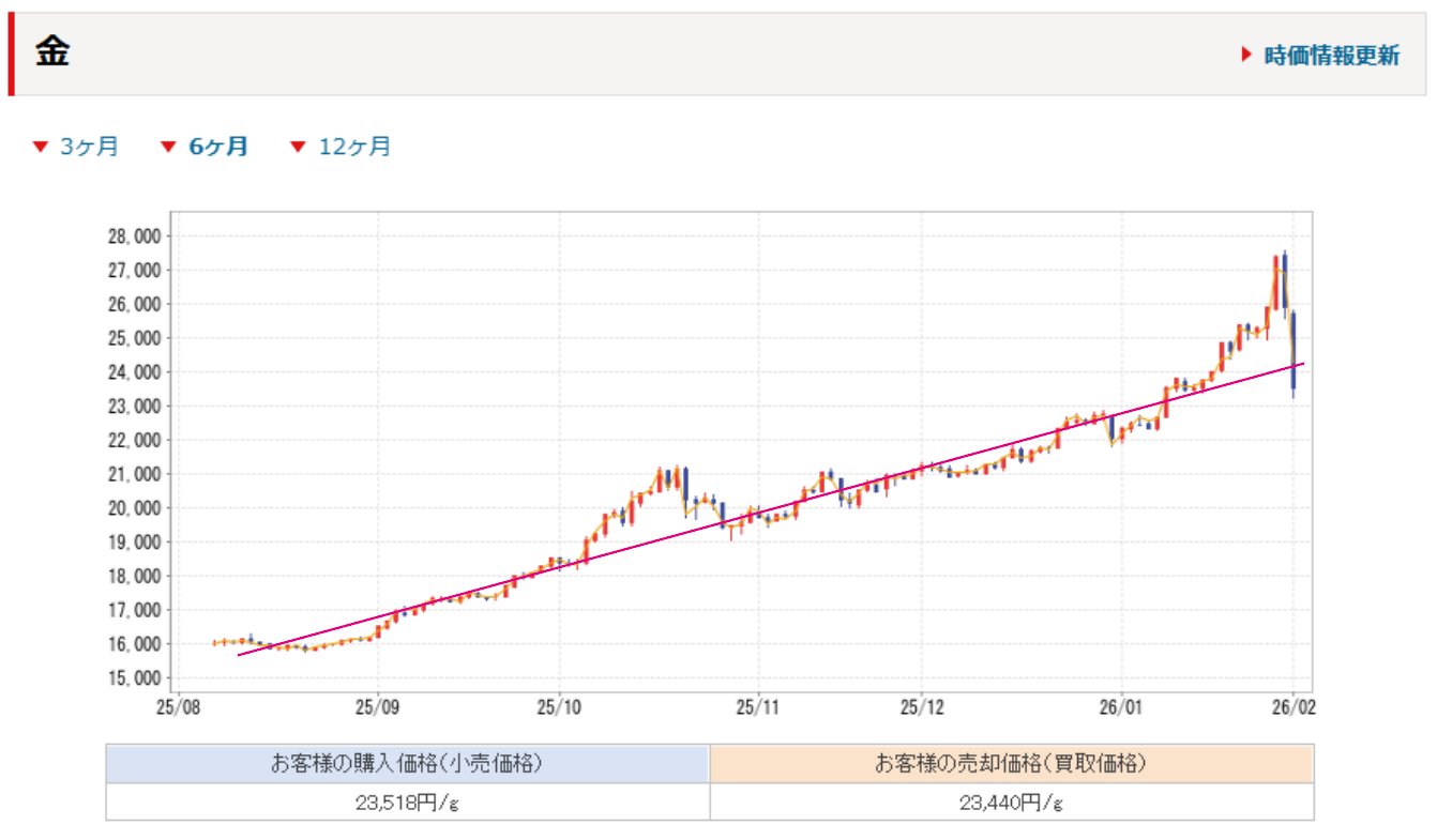 | … | 96無念Nameとしあき26/02/02(月)16:30:44No.1384439482+ゴールドに関係なく色んなものが下がってるからなあ |