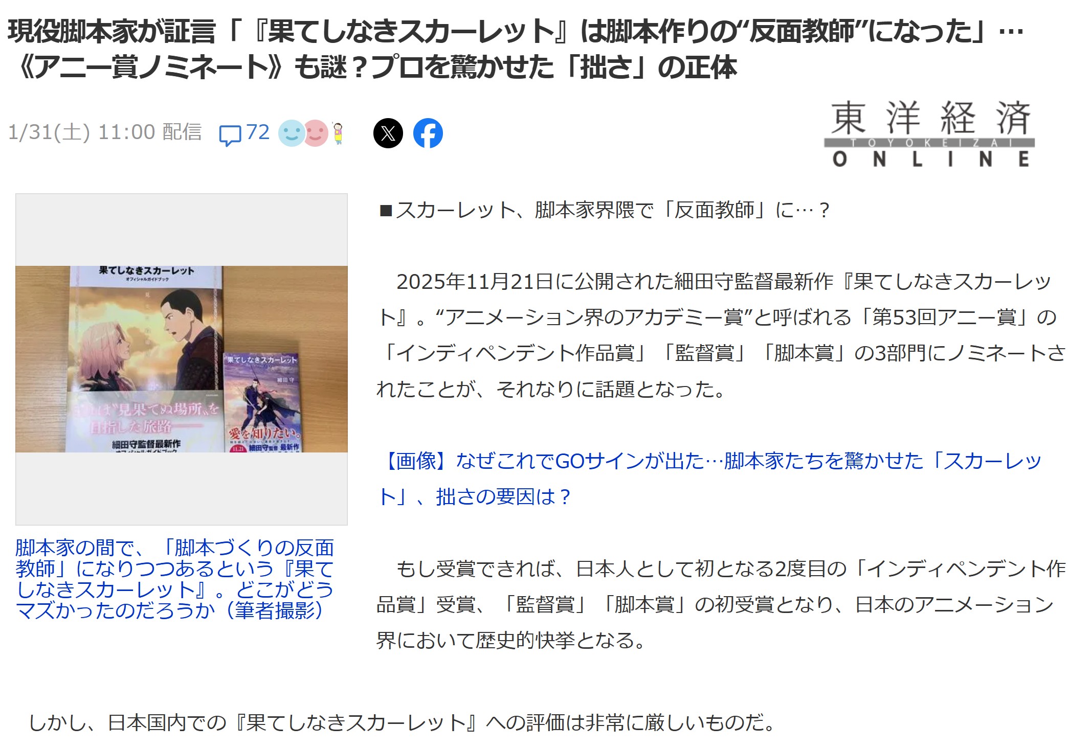| … | 53無念Nameとしあき26/02/02(月)15:34:42No.1384430922そうだねx3>スカーレットも国宝か鬼滅公開した時期から |