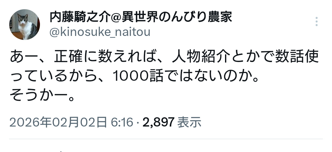 | … | 40無念Nameとしあき26/02/02(月)20:18:41No.1384488539そうだねx1>厳密には1000ではないらしいと作者が |