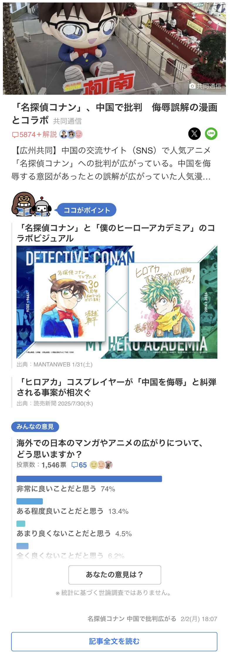 | … | 47無念Nameとしあき26/02/02(月)23:35:14No.1384540758+>青山剛昌ってコナンに白人キャラは出すのに中国人と韓国人避けてるよな |
