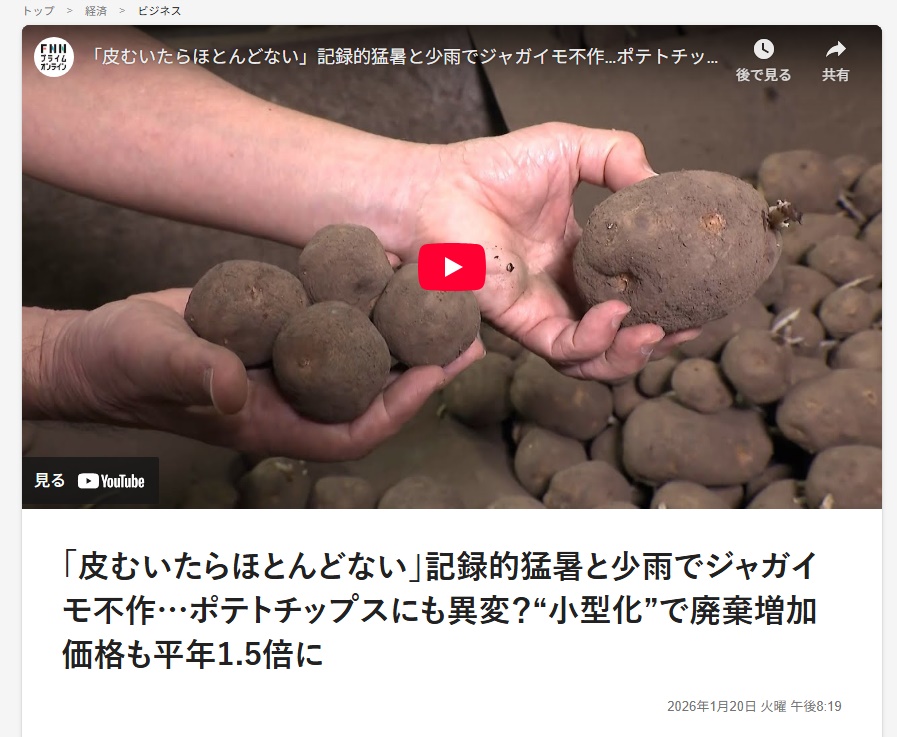 | … | 41無念Nameとしあき26/02/03(火)02:53:26No.1384564175+芋系は病気になって供給少なくなるとスーパーの品揃えが露骨に寂しくなり値上がりが凄いので |