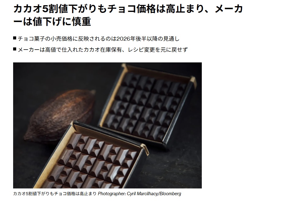 | … | 38無念Nameとしあき26/02/03(火)02:49:52No.1384564050+カカオ自体の値段が下がったからあとはどうなるかだぶう |