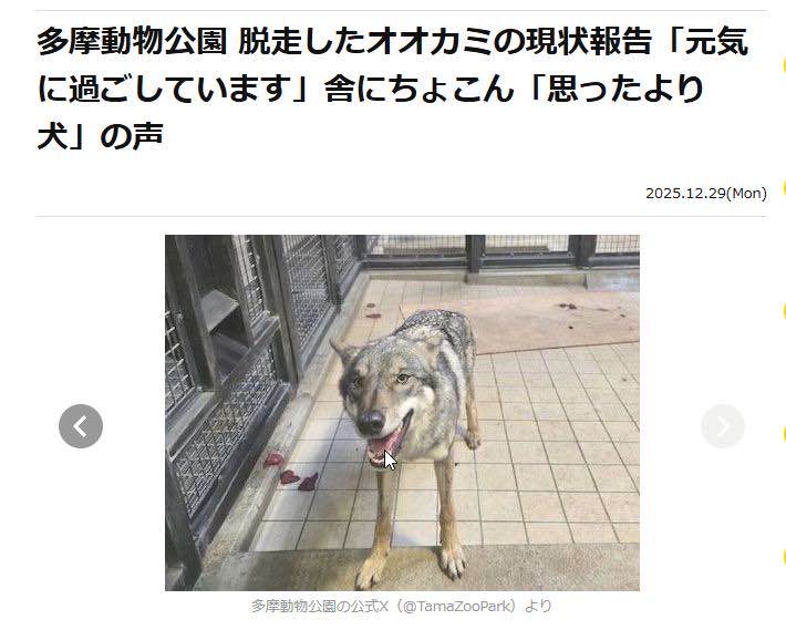 | … | 68無念Nameとしあき26/02/03(火)17:59:34No.1384663424+>多摩動物公園の脱走した狼犬 |