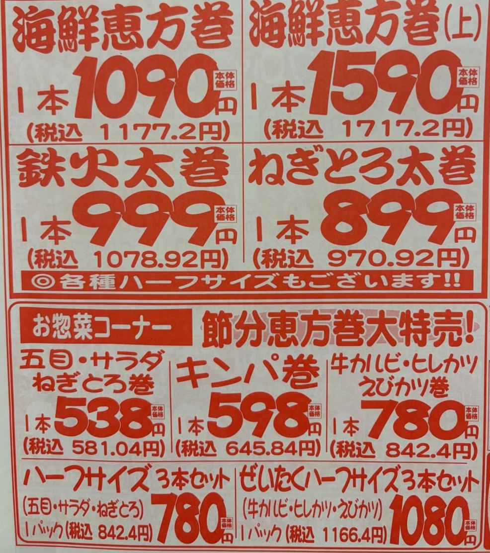 | … | 296無念Nameとしあき26/02/03(火)19:30:00No.1384684800+太巻なんて普段200〜300円で売ってるのになんで |