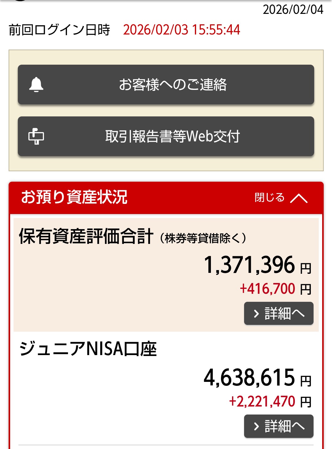 | … | 66無念Nameとしあき26/02/04(水)08:02:48 ID:CDLfZUgENo.1384793998+ 1770159768055.jpg-(64888 B) 前スレに初めて1400万超えたスクショの株あきがいたけど今日から僕の兄さんので |