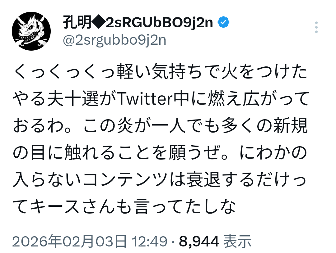 | … | 27無念Nameとしあき26/02/04(水)22:03:04 ID:zqhk3taMNo.1384948046そうだねx1 1770210184342.png-(192540 B) お前だったのか火付けをしたのは |