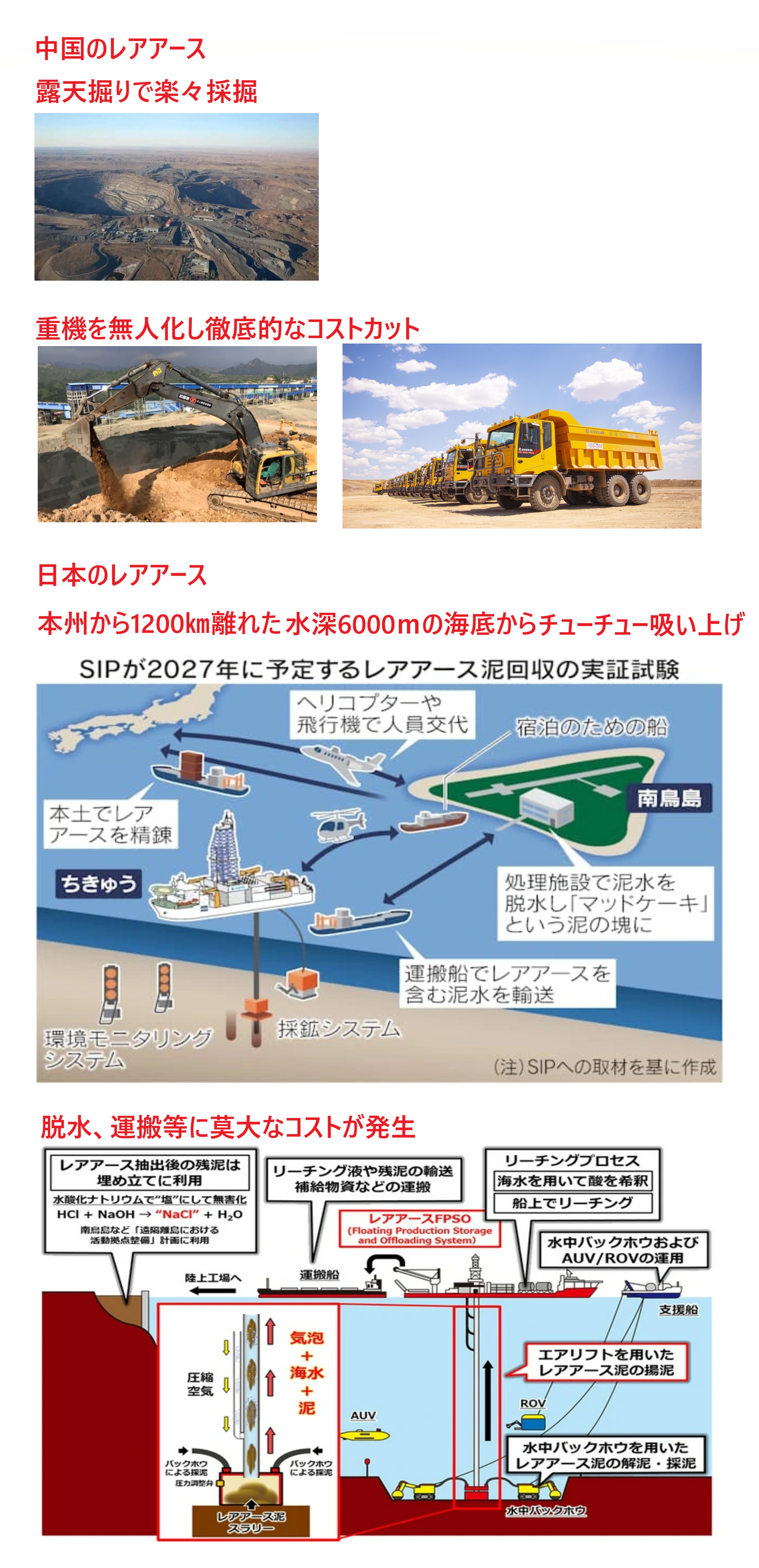| … | 1無念Nameとしあき26/02/04(水)21:03:27No.1384929694+日中関係の緊迫化が続く中、日本政府は中国へのレアアース(希土類)依存度を下げるための国家プロジェクトを加速させている。資源開発を目的とした世界初の海底レアアース採掘という莫大なコストが想定されるプロジェクトだが政府は経済安全保障を重視し、採算を度外視する覚悟で取り組んでいる。 |
