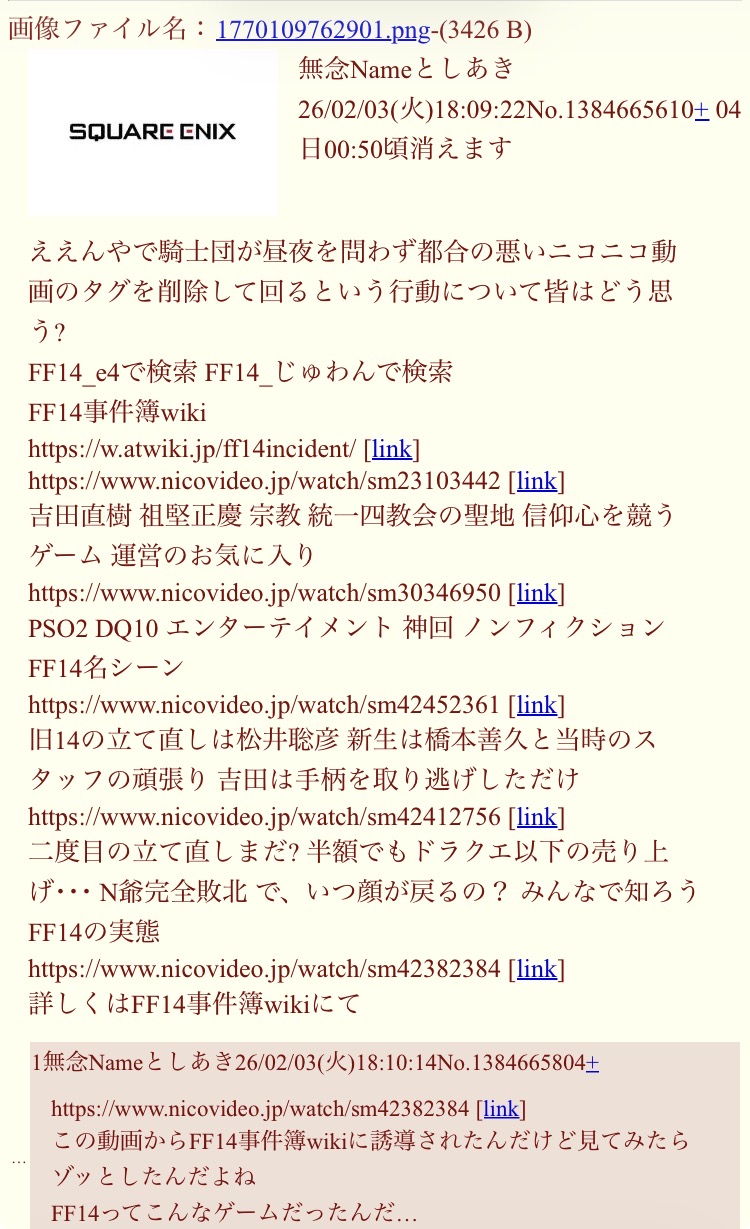 | … | 12無念Nameとしあき26/02/05(木)08:05:59No.1385010520そうだねx10スクエニ粘着 |