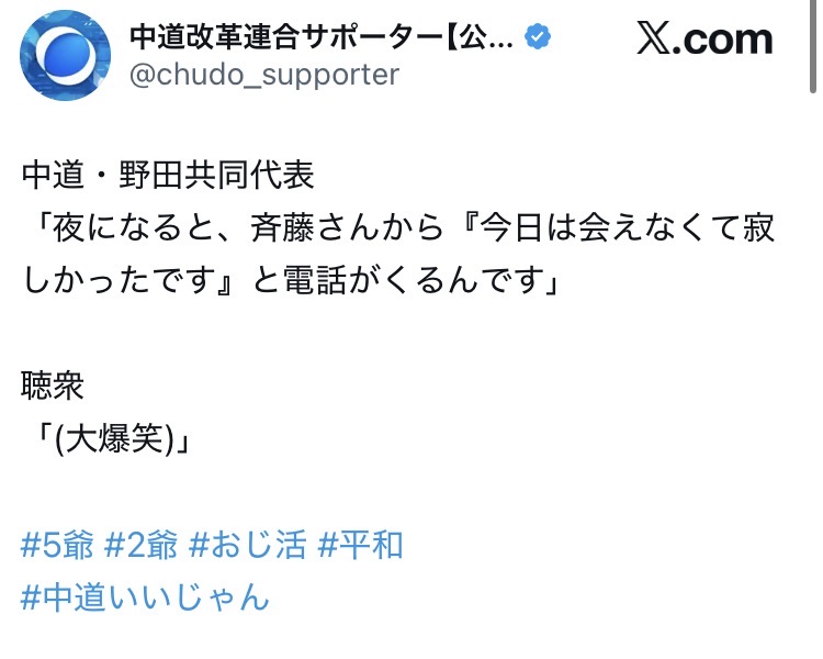 | … | 61無念Nameとしあき26/02/05(木)11:08:31No.1385030792そうだねx1>この新党1か月も持たずに解散しそう |