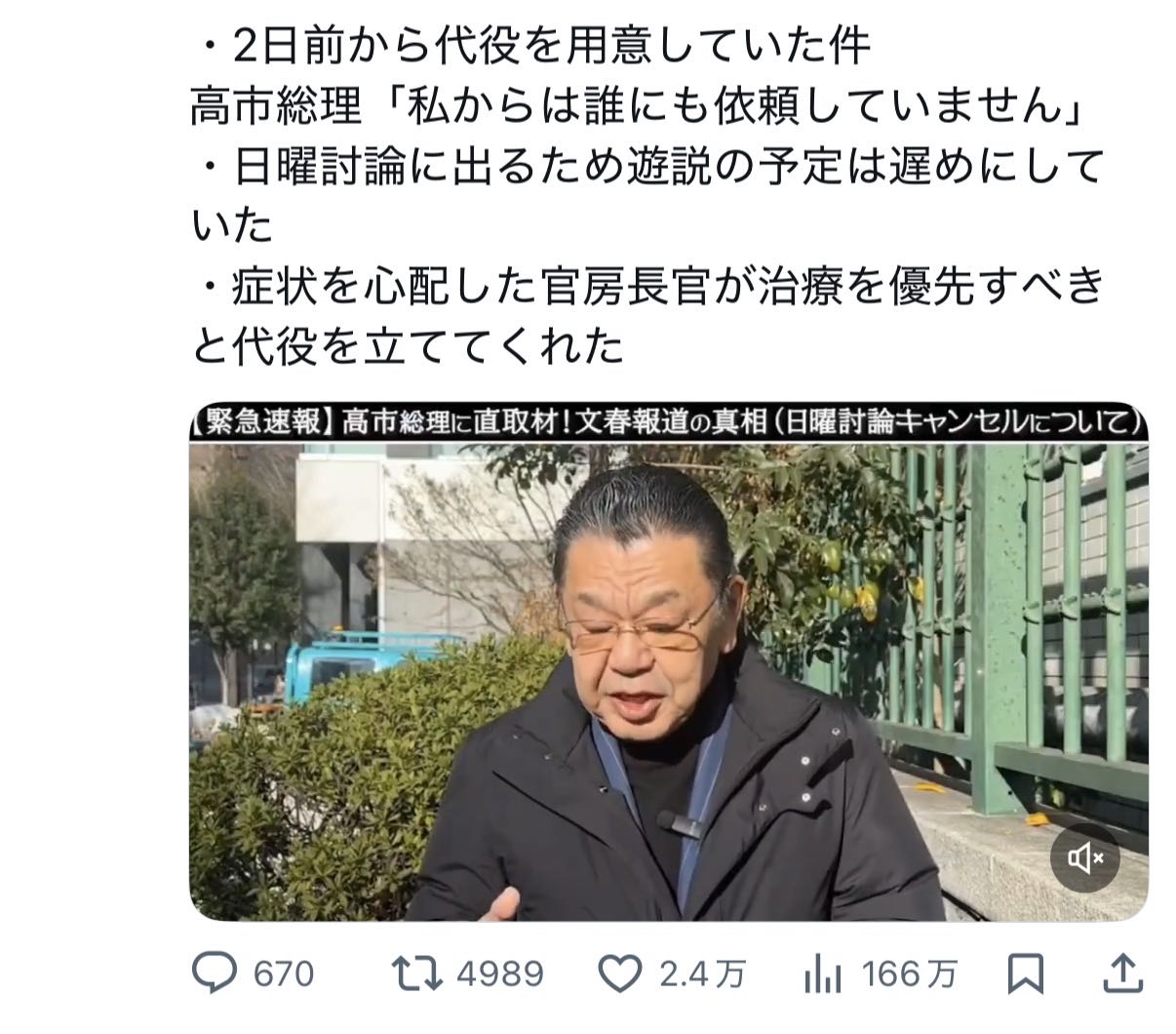 高市総理の日曜討論欠席批判に対して