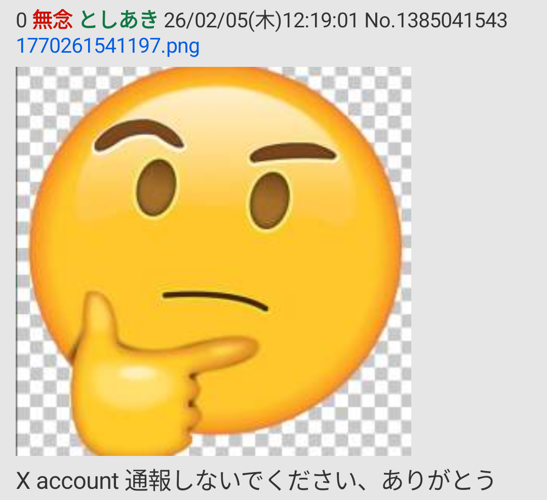 | … | 91無念Nameとしあき26/02/05(木)12:47:38No.1385047933そうだねx7 1770263258802.png-(62433 B) >スレ爆破失敗した後もチラチラ覗いて人がいなくなったら |