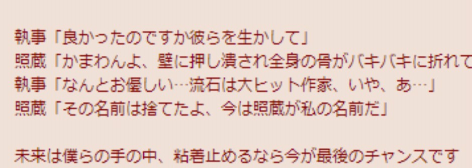 | … | 33無念Nameとしあき26/02/05(木)14:18:40 IP:160.249.*(spmode.ne.jp)No.1385063770そうだねx2照蔵コピペ去年ぐおスレあたりで見たよ |