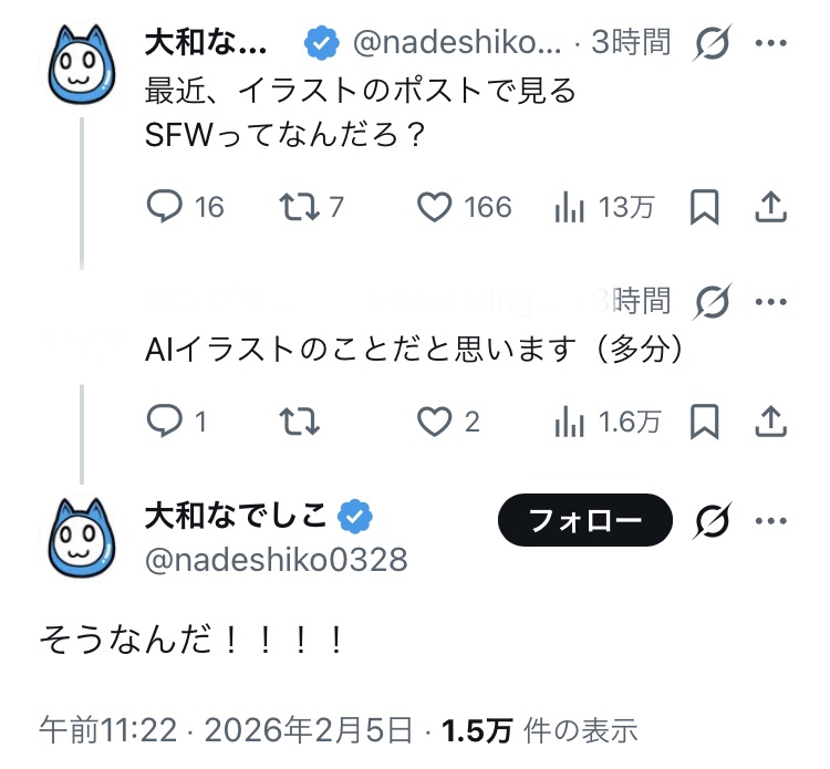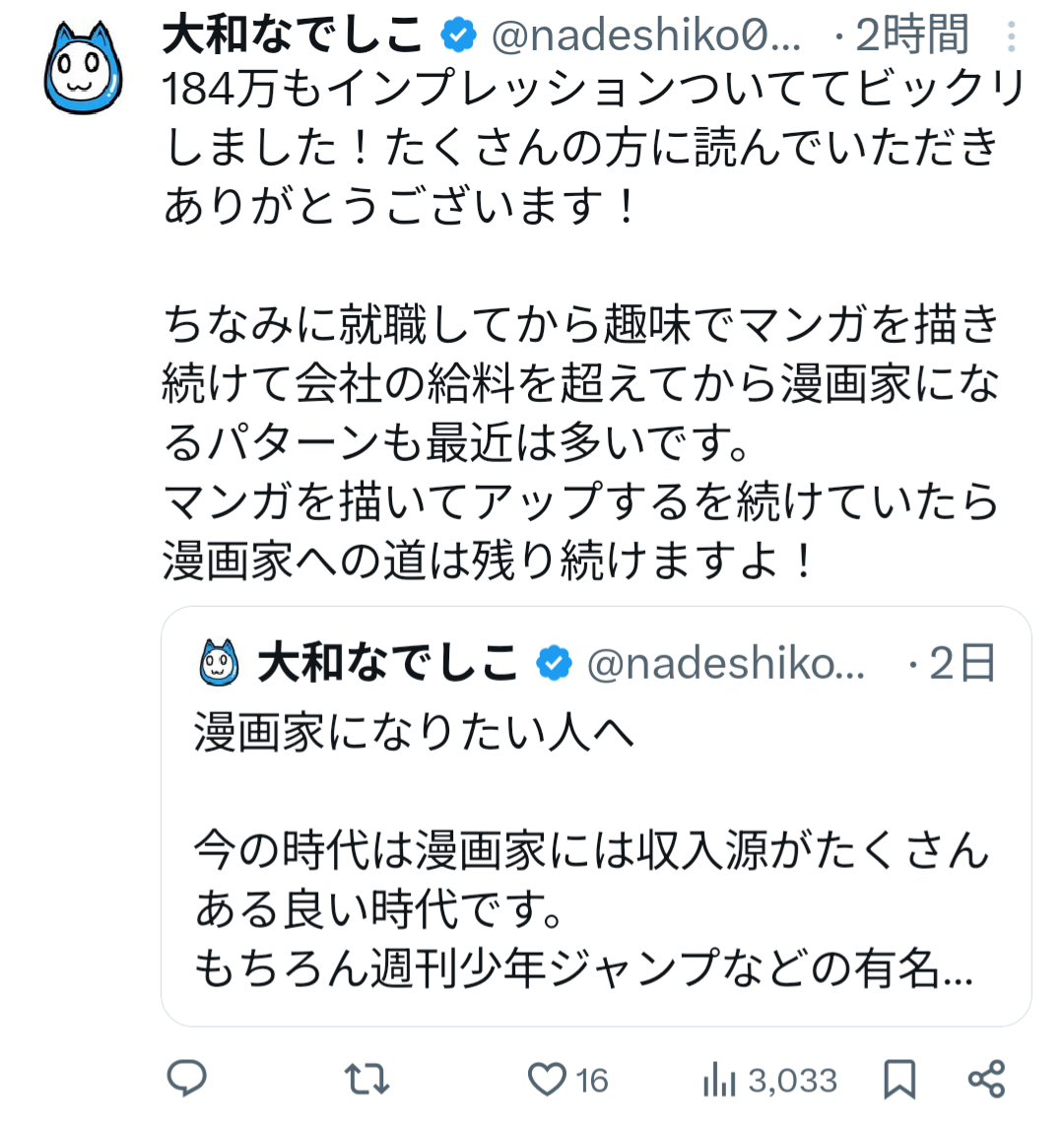 | … | 35無念Nameとしあき26/02/05(木)14:25:10 IP:49.98.*(spmode.ne.jp)No.1385064791そうだねx2そもそもなでが最後に一応漫画家としての仕事したのいつだっけ |