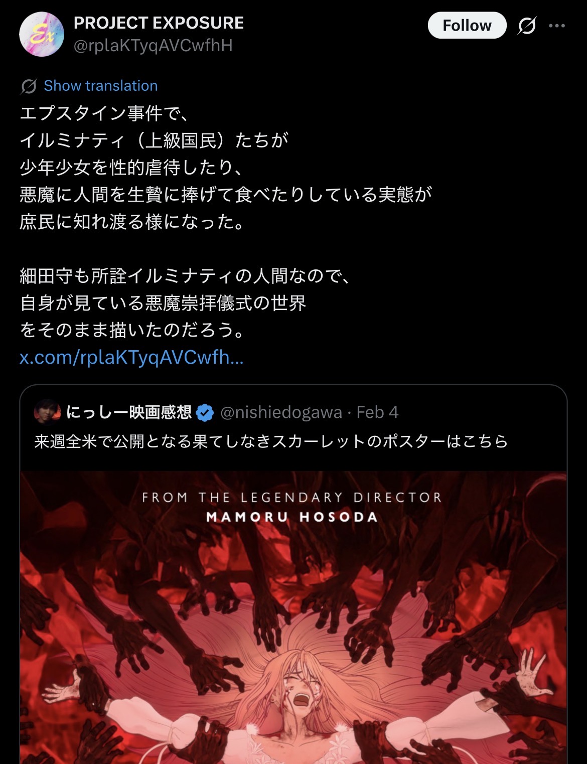 | … | 5無念Nameとしあき26/02/05(木)20:52:09No.1385144675+海外勢をエロで騙すのかね細田君…見損なったぞ |