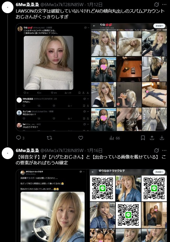 | … | 14無念Nameとしあき26/02/05(木)23:12:45No.1385184577そうだねx4 1770300765371.jpg-(148763 B) コンビニ前で女性が弱音はいたりハゲたおじさん求めている画像は全てAI生成 |