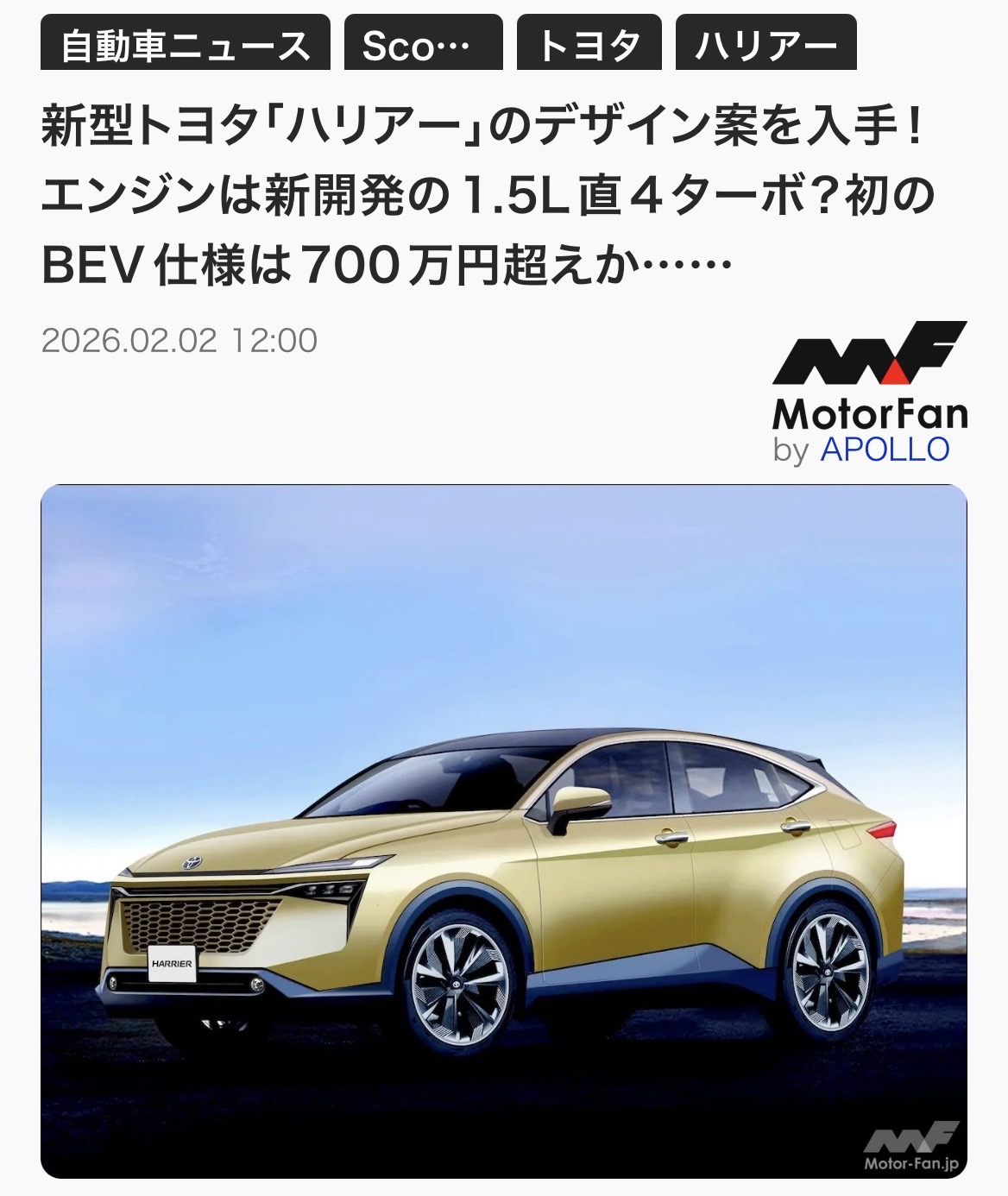 次期カローラ(コンセプト)スレ削除された記事が1件あります.見る