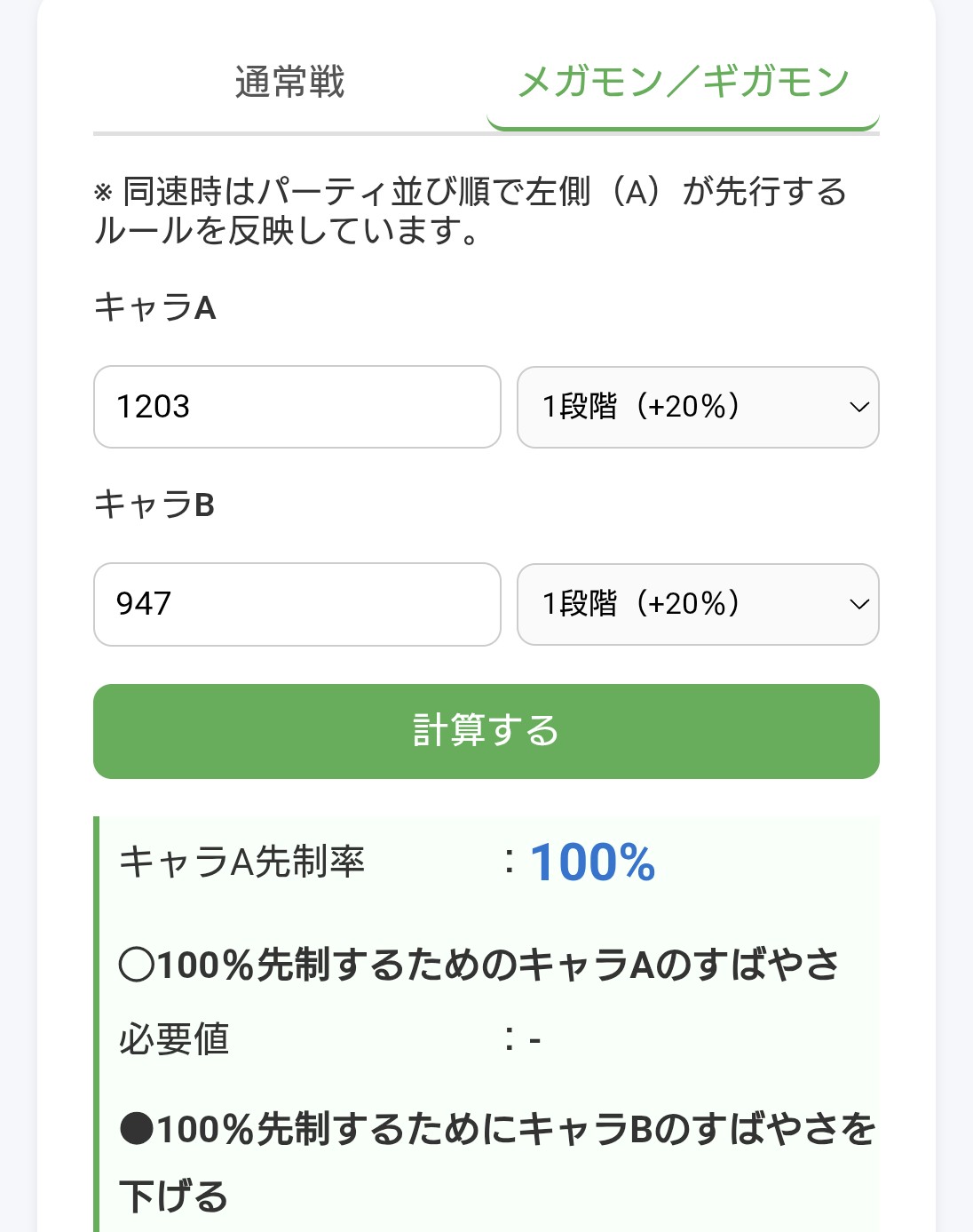 | … | 52無念Nameとしあき26/02/06(金)12:48:45No.1385268604+メガモン戦で素早さ1203のキャラAと947のキャラBがいて、Aが必ず先に行動する想定で調整しているのにたまにBが先に動くことがある |