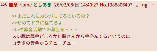 | … | 73無念Nameとしあき26/02/08(日)15:58:20No.1385824223そうだねx4直接レスしてこいよだっせぇな |
