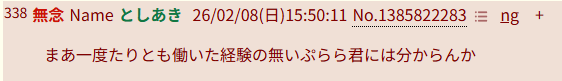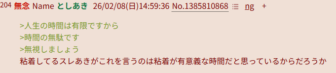| … | 83無念Nameとしあき26/02/08(日)16:10:23No.1385826899+レスの文体でだいたいわかって |