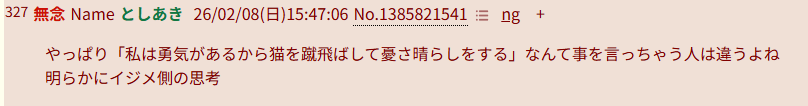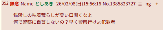 | … | 63無念Nameとしあき26/02/08(日)15:50:34No.1385822388そうだねx1猫蹴りしてない証拠を出してない時点で聞く価値ないが |