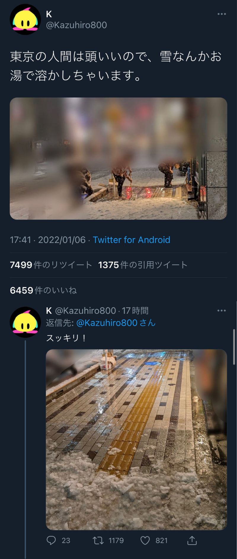 | … | 7無念Nameとしあき26/02/08(日)14:31:11No.1385804474+雪かきサボって凍結したからお湯かけることになったアホじゃん |