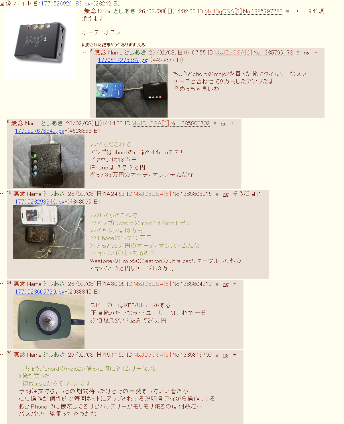 | … | 221無念Nameとしあき26/02/08(日)17:52:42No.1385851614そうだねx2>高級オーディオ買ったからな |