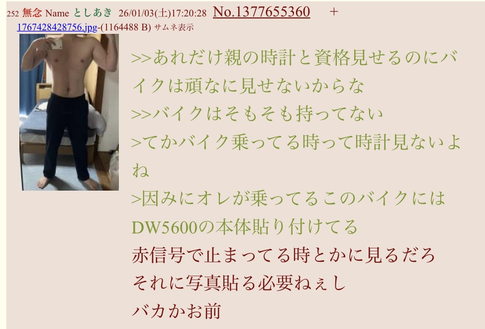 | … | 97無念Nameとしあき26/02/08(日)17:31:56No.1385846218+言い訳が30手前(?)の奴のモノとは思えん |
