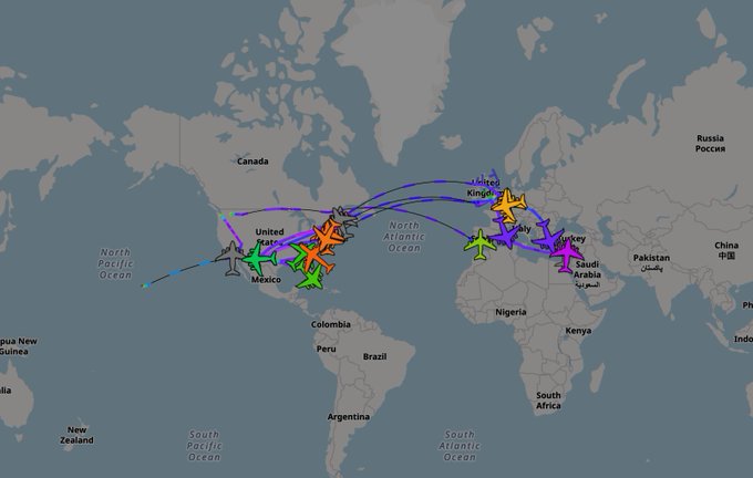 大量の輸送機が中東へ移動中