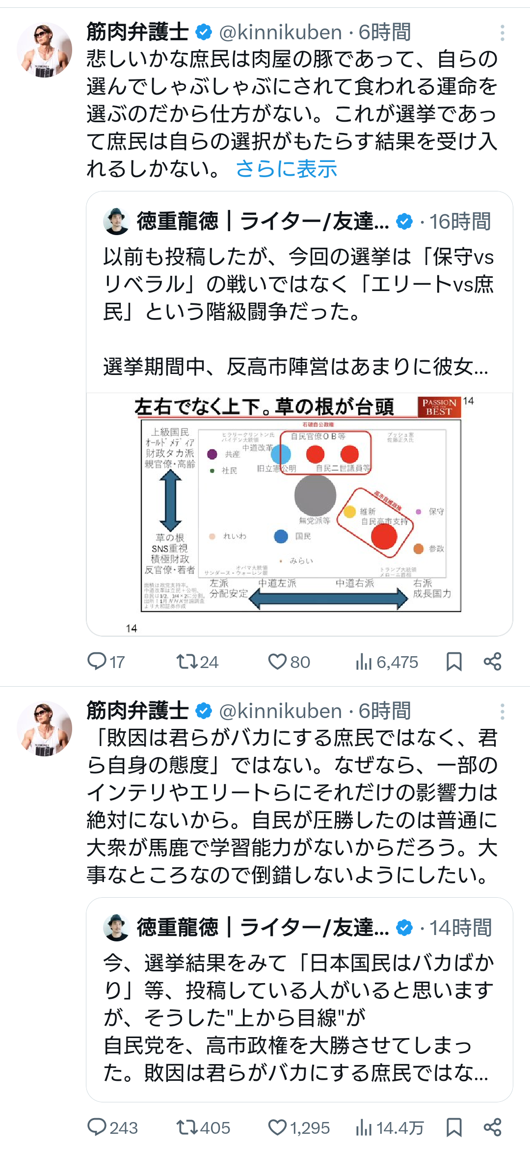 | … | 61無念Nameとしあき26/02/09(月)13:01:36No.1386115804+もう今回の選挙で他責思考者は間違いなく日本の敵ってはっきりしたな |