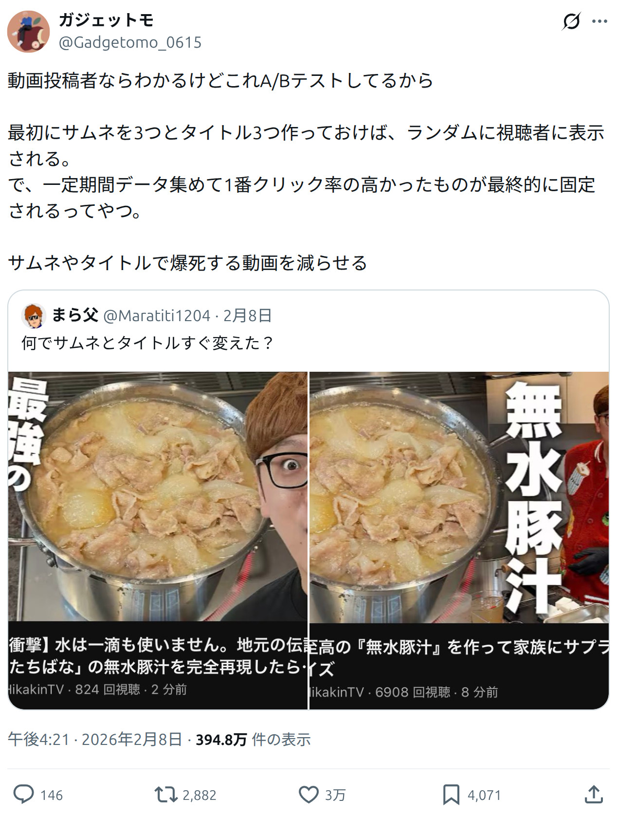 なるほろ考えてみりゃ誘導にすぎないタイトルやサムネイルがひとつである必要はねえよなあ