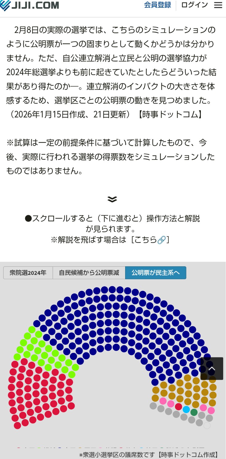 | … | 54無念Nameとしあき26/02/09(月)17:51:12No.1386167406そうだねx1>最強野党誕生で自民壊滅シミュレーション(時事調べ) |