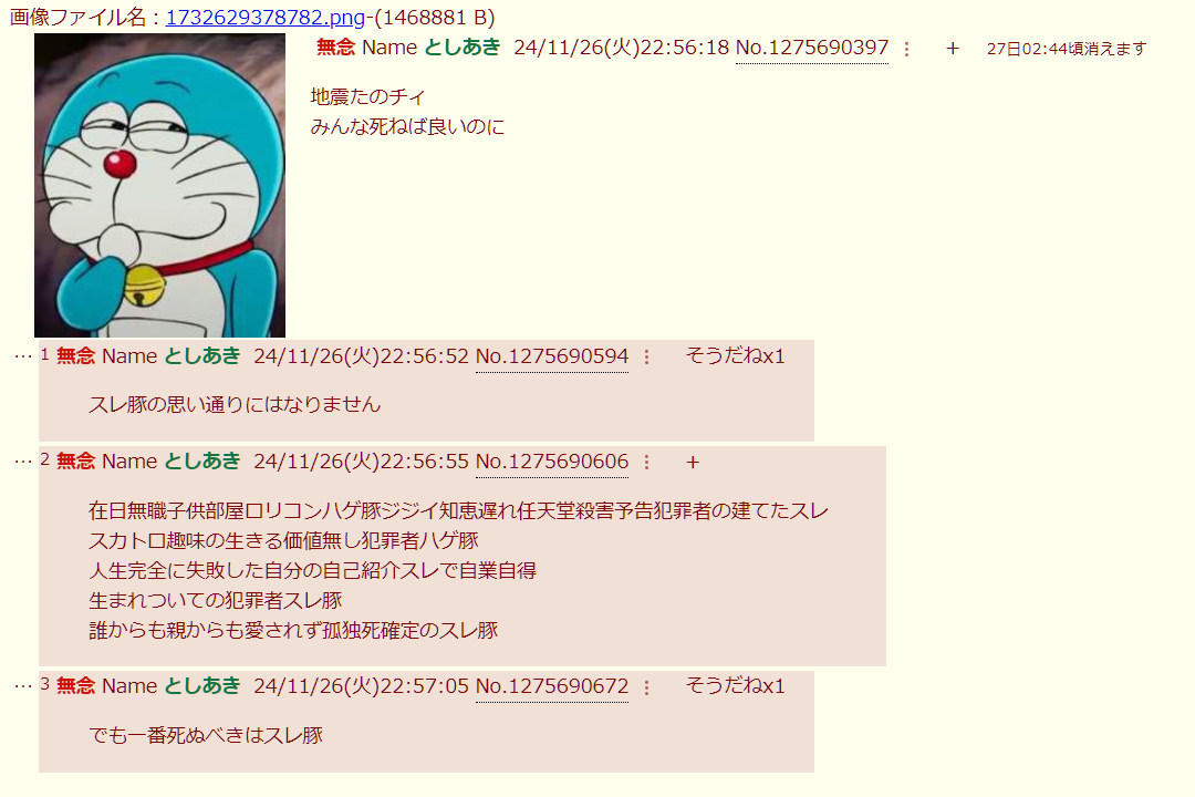 | … | 258無念Nameとしあき26/02/09(月)22:13:05No.1386241082+ドラえもんってむしろかなり辛辣な部類では? |