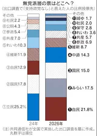 | … | 195無念Nameとしあき26/02/10(火)16:35:03No.1386369604+実際政策で立憲選んでた意識外角高めな都市無党派の票が公明との合体で宙に浮いてたのは確かだからな |