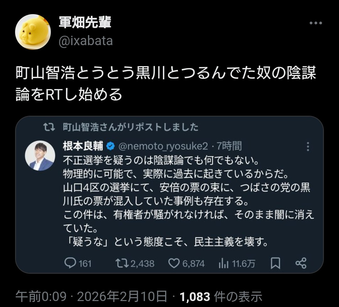 | … | 124無念Nameとしあき26/02/10(火)15:56:20No.1386364073+町山さんが不正選挙というなら疑わなくて良さそう |