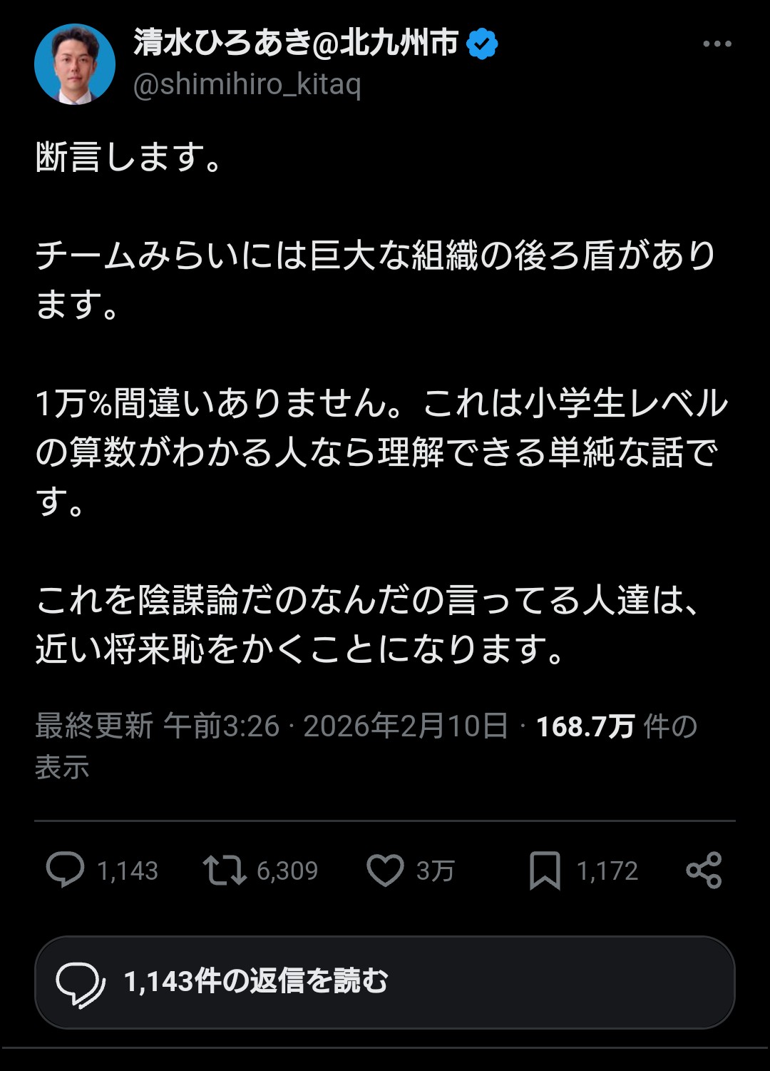 | … | 44無念Nameとしあき26/02/10(火)15:10:00No.1386357406+まあ陰謀論者とチームみらいは確かに相性悪いだろうなと思う |