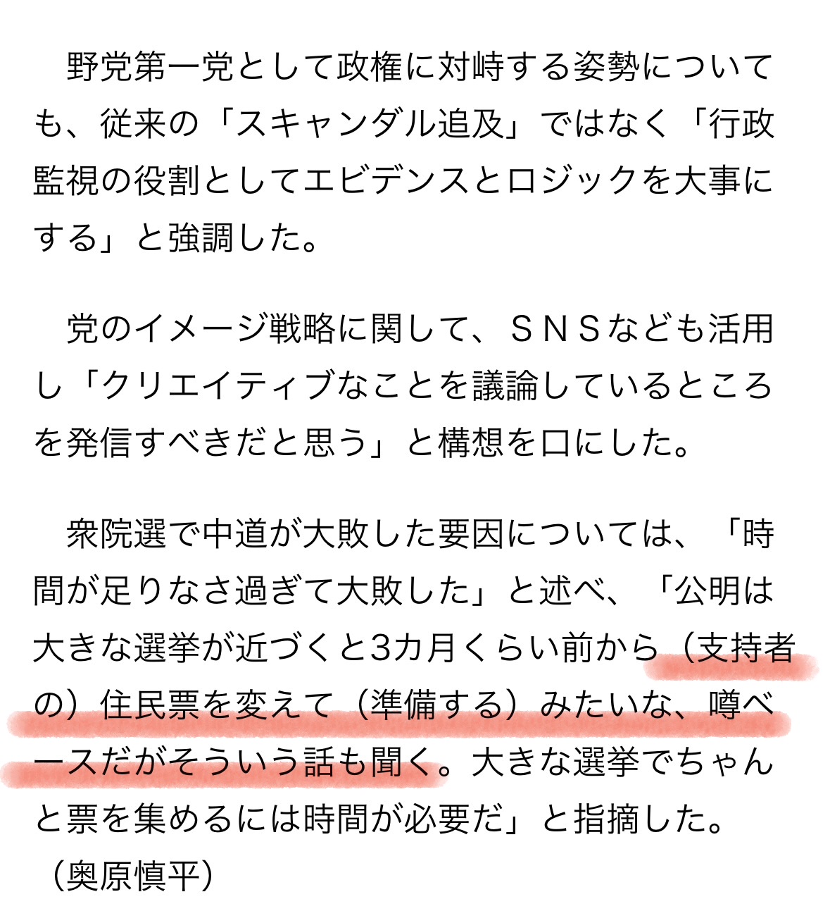 | … | 64無念Nameとしあき26/02/12(木)14:43:03No.1386828032+米山氏は「2度目の敗軍の将の野田氏に『A級戦犯だ』…中道への合流『自滅しにいくようなものだ』との声も」との見出しの記事を引用。「148議席から100議席に減るのを回避しようとして、『抜き打ち直前合併』という奇策を打った上、中道改革連合という余りに無茶な党名を筆頭に多々セオリーに反する選挙戦術を展開して48議席の大敗を喫した事は事実です」とした上で「何故この様な無茶が通ったのかそれは失敗の研究が必要です」と訴えた。 |