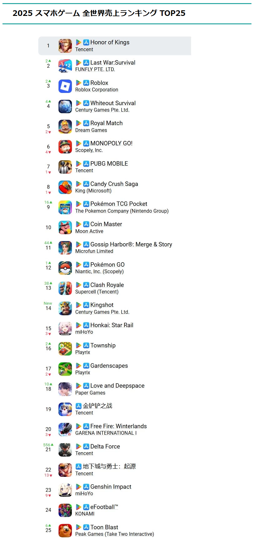 | … | 56無念Nameとしあき26/02/13(金)16:11:37No.1387072602+日本は美少女ゲーで遅れはとってるけどFGOとかドッカンバトルとか版権ゲーでは勝ってるイメージ |