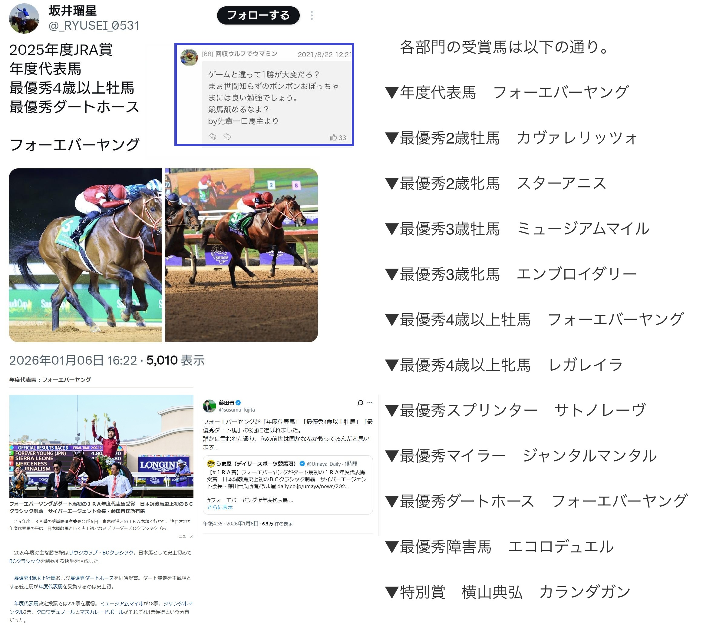 | … | 255無念Nameとしあき26/02/13(金)17:25:42No.1387084817そうだねx1 1770971142796.jpg-(871260 B) >先輩一口馬主さん何か言ってやってください! |