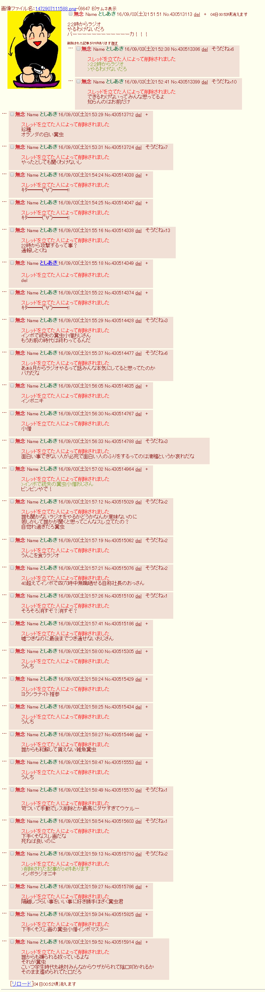 | … | 21無念Nameとしあき26/02/13(金)16:13:57No.1387072997+うわぁ…業務で外出のスレ消して逃げた |