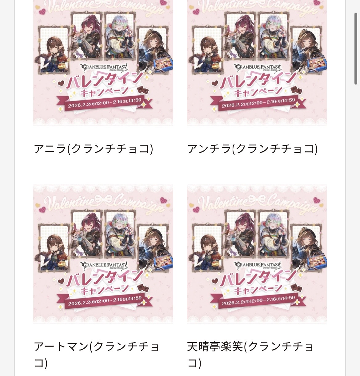 | … | 1無念Nameとしあき26/02/13(金)22:25:54 ID:TtMo8OTgNo.1387161333+ 1770989154650.png-(2255725 B) グランブルーファンタジーバレンタインキャンペーン2026 |